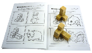 「育脳トライアル」では空間認知能を鍛える為、2ページごとに点描写を入れています。その他「積み木の数や見え方」・「ロープの結び目」・「展開図」・「風の向き」などの問題もあります。